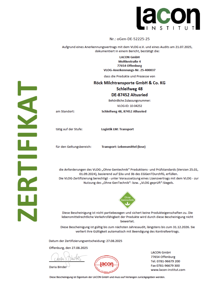 Röck Milchtransporte GmbH & Co. KG Schleifweg 48 D-87452 Altusried